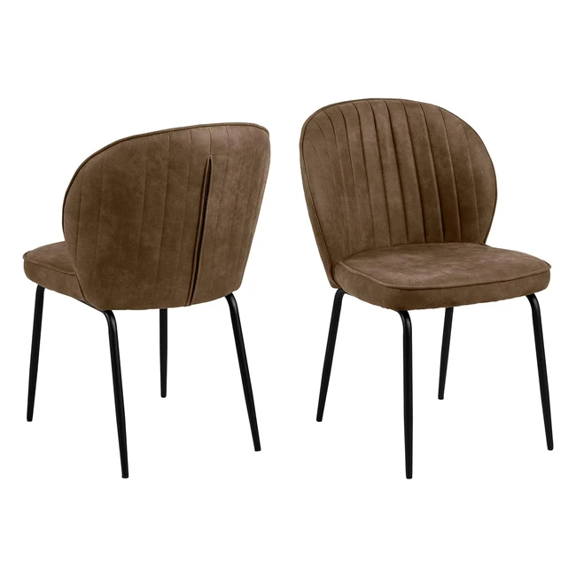 AC Design Möbel Panna Set 2 Esszimmerstühle in Hellbraun Gepolsterter Sitz Schwarz Metallbeine W47 x D44 x H82 cm