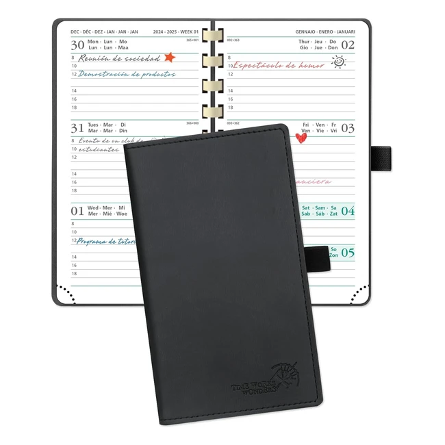Agenda 2024 Semana Vista A6 - Poprun - Planificador Semanal - Cuero Vegano - FSC Negro