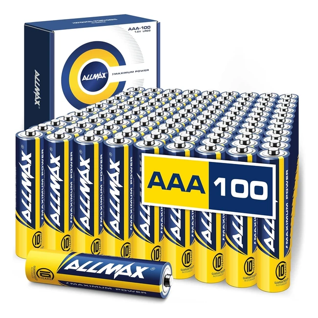 Allmax AAA Maximum Power Alkaline Batteries 100 Count - Ultra Longlasting 10-Year Shelf Life Leakproof Design 1.5V