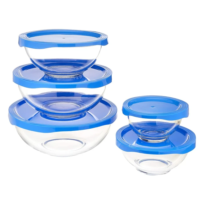 Amazon Basics 5-Piece Glass Mixing Bowl Set with Lids - BPA-Free - Clear/Blue - 1x 49L, 88L, 14L, 24L, 33L