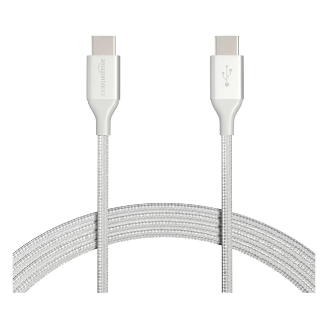 Amazon Basics USB C auf USB C 20 Schnellladekabel Nylon umflochten 480Mbps USB IF zertifiziert für Apple iPhone 15 iPad Samsung Galaxy Tablets Laptops 10ft3m Silber