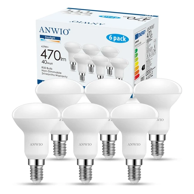 anwio Daylight R50 E14 LED Spotlight Bulb 40W Equivalent 5W Cool White 6-Pack