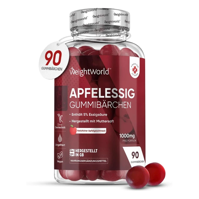 Apfelessig Gummibären 1000 mg Keto mit Essig Nüssen Apfelessig Vitamin C B6 B12 B9 Folsäure 90 Gummibären mit Apfelgeschmack Alternative zu Flüssigkeit Vegan WeightWorld
