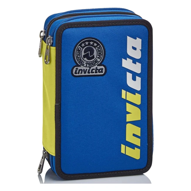 Astuccio Scuola Invicta Blu Kupang Triplo Scomparto - Completo di Penne, Matite e Pennarelli