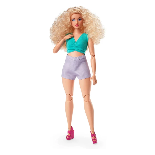 Barbie Signature Looks Bambola Snodata HJW83 - Capelli Ricci Biondi - Silhouette Curvy - Abito Intaglio Vita - Giocattolo Moda Esclusivo