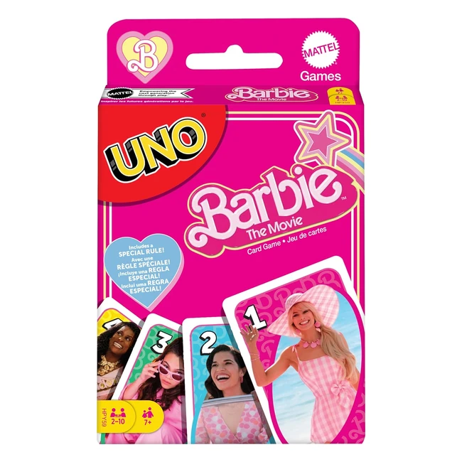 Barbie The Movie UNO Kartenspiel für Filmfans mit Lieblingscharakteren und unvergesslichen Szenen, Spezialregel, für 2-10 Spieler ab 7 Jahren