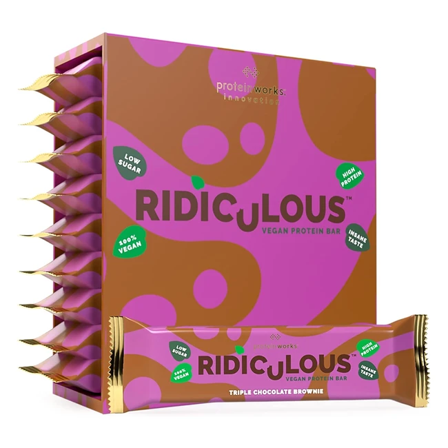 Barre protéinée vegan Ridiculous - The Protein Works - Réf. 12345 - 15g protéines, faible sucre