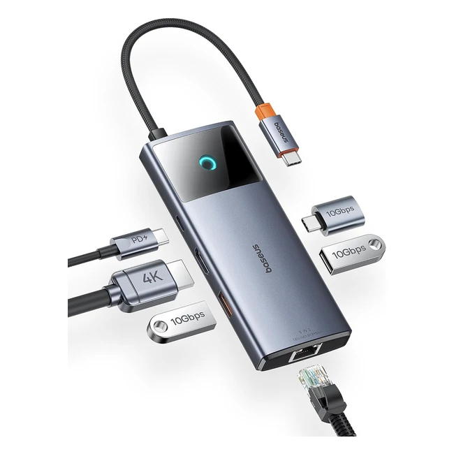 Baseus Hub USB C 10Gbps 6 en 1 con Gigabit Ethernet 4K60Hz HDMI - Para iPhone, Laptop, MacBook, Surface, Dell, iPad, Steam Deck, Samsung