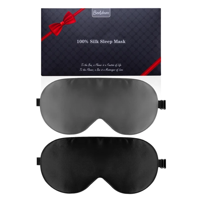 Beevines Silk Sleeping Mask 2 Packs - Real Mulberry Silk Eye Mask with Adjustable Straps - Reduce Puffy Eyes