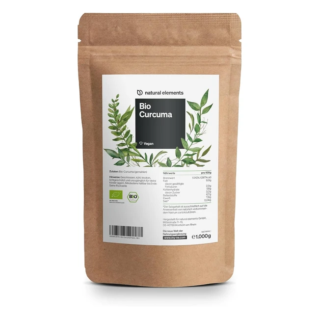 Bio Curcuma Pulver 1kg - Naturliche Elemente - Biozertifiziert - Vegan - Glutenfrei