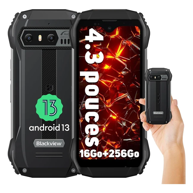 Blackview N6000 Mini - Téléphone Portable Incassable 16Go/256Go/1To - Helio G99 - 43" Corning Gorilla Glass 5 - 3880mAh - 48MP/16MP - Android 13 - NFC/Fingerprint/Face ID/GPS - Dual SIM