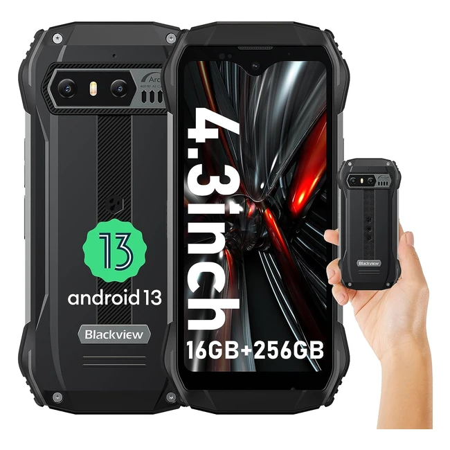 Compact and durable, the Blackview N6000 is the ultimate small rugged smartphone. Experience vibrant visuals on the 4.3-inch screen, powered by Android 13. With up to 16GB RAM and 256GB ROM, enjoy exceptional performance in gaming and apps. Capture vibrant pictures with the 48MP rear camera and enjoy long-lasting battery life with the 3880mAh battery. This outdoor phone is built to withstand extreme conditions and offers privacy with fingerprint and face unlock. Stay connected effortlessly with dual nano SIM slots and enhanced audio with the smartpa ultralinear box speaker. Get yours now and embrace the ultimate rugged phone experience.