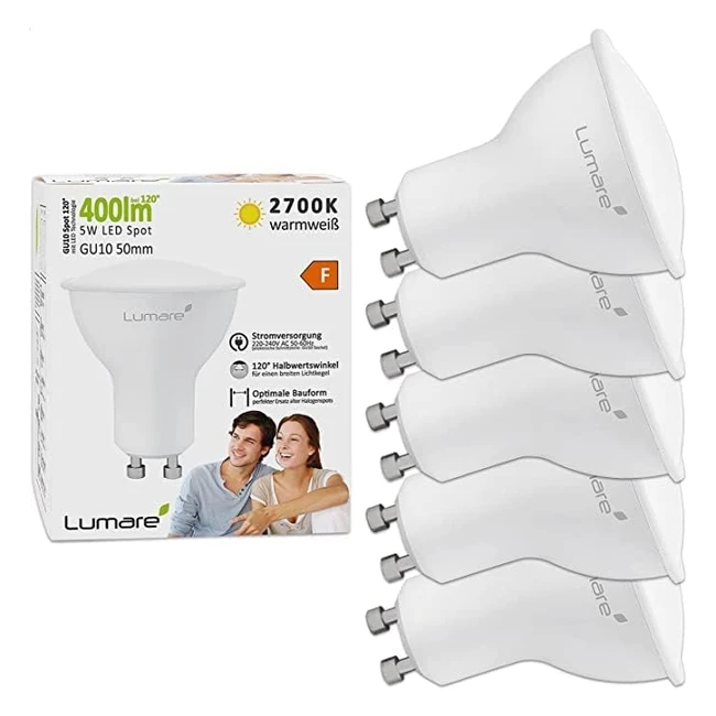 -50%¡Aprovecha ahora! Bombilla LED Lumare GU10 de alta calidad, luz cálida sin parpadeos. Bajo consumo de energía, sustituye las bombillas halógenas de 50W. Eficiencia energética A, 25000 horas de vida útil. Iluminación uniforme de grandes superficies, ángulo de haz de 120. Colores vivos y luminosidad plena. ¡No esperes más, enciéndela ya!