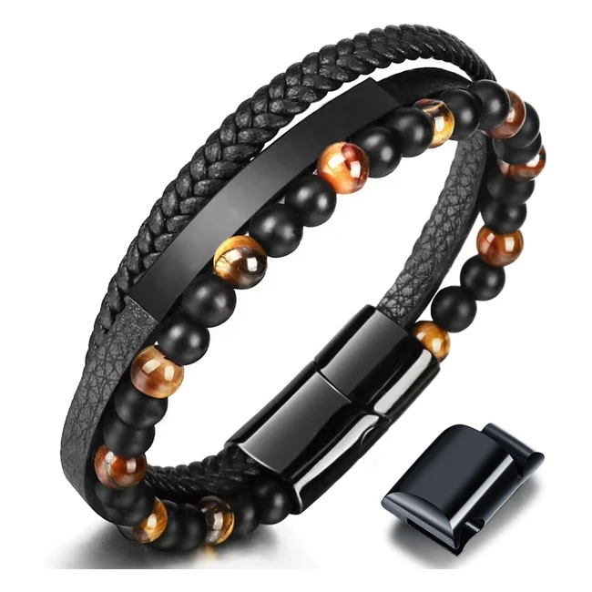 Bracelet homme en cuir avec perles en pierre naturelle - JBNIUAY #cadeauhomme #braceletcuir #pierrenaturelle