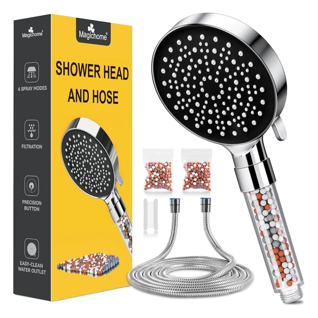 ¡Descubre el cabezal de ducha con filtro antibloqueo Magichome! Con boquilla de silicona antical para una limpieza fácil, 6 modos e interruptor de una sola mano. Disfruta de una ducha de alta presión y triple filtración para una experiencia de lluvia saludable. ¡Instalación fácil y universal! ¡Obtén agua de ducha más saludable ahora!