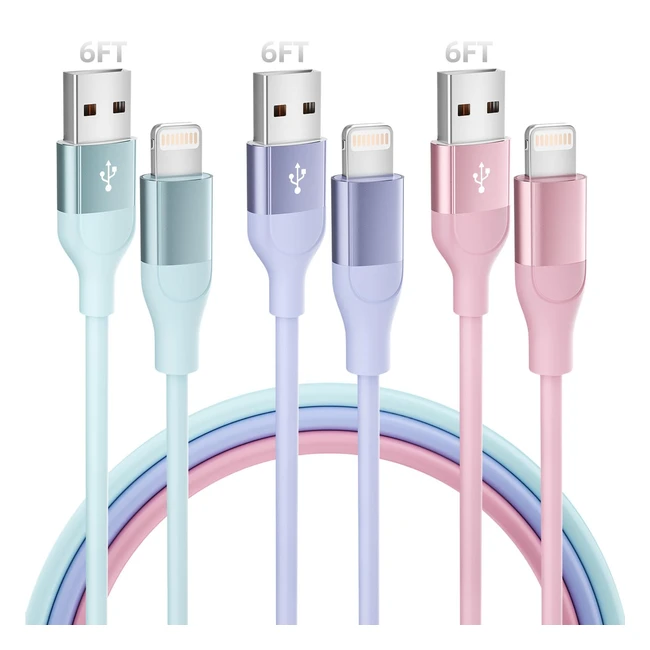 Câble chargeur iPhone 2m - Lot de 3 - Charge rapide - Compatible avec iPhone 14 13 12 11 Pro Max XR XS X 8 7 6 Plus SE