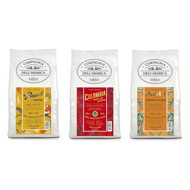 Caffè Corsini Compagnia dell'Arabica Tris - Grani Monorigine 250g x3