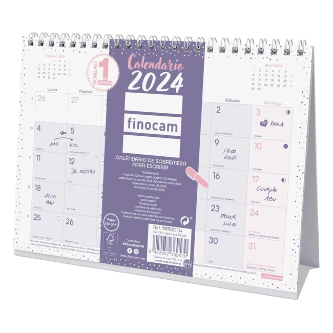 Calendario 2024 Finocam Chic Sobremesa Enero-Diciembre 12 Meses Morado