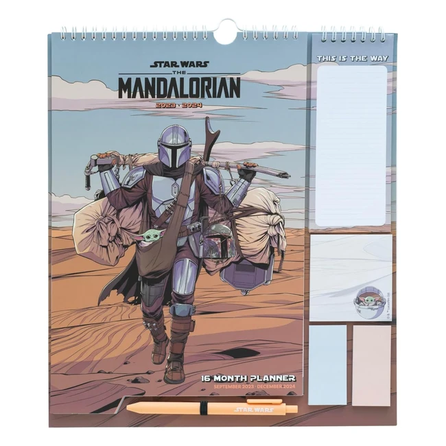 Calendario Famiglia 2024 Star Wars Mandalorian - Organizzatore Mensile con Stickers e Lista della Spesa