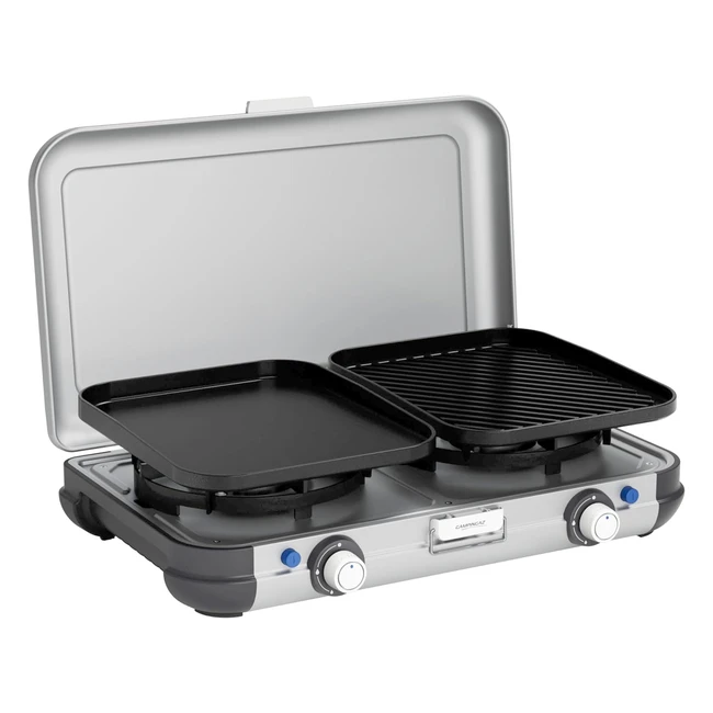 Campingaz Camping Kitchen 2 Grill - Portable Gas Stove with 2 x 2000 Watts Power - Removable Grill Plates - Compact