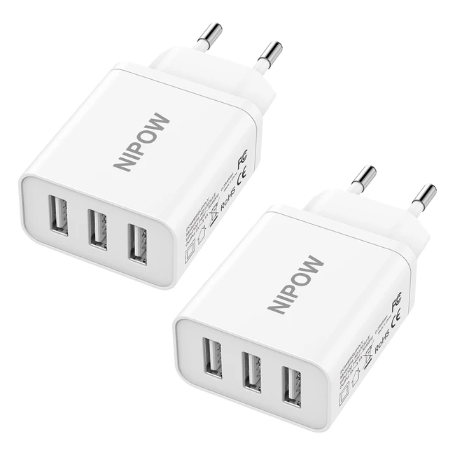 Caricatore USB Multiplo 2 Pack Presa 3 Porte 15W 3A Alimentatore Spina Caricabatterie USB Rapido per iPhone 14 Pro 13 Pro Max Samsung Galaxy Note Huawei Xiaomi