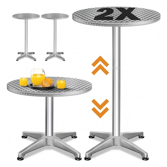 Casaria Set 2 Bar Tische höhenverstellbar 70 cm 115 cm stabil Aluminium rund Ø 60 cm wetterfest Outdoor 2in1 Bistro Tisch Bierbank Party