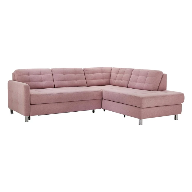 Cavadore Ecksofa Piccoli mit Ottomane, modernes Design, Bettfunktion und Bettkasten, 233x80x196, Flachgewebe Altrosa