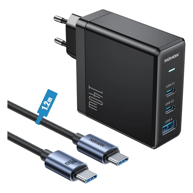 Chargeur USB-C Rapide 140W PD 30 - Nohon - Réf: 123456 - Charge Rapide 140W 12m - 3 Ports - iPhone 12 13 14 15 MacBook iPad Laptop Samsung Galaxy S
