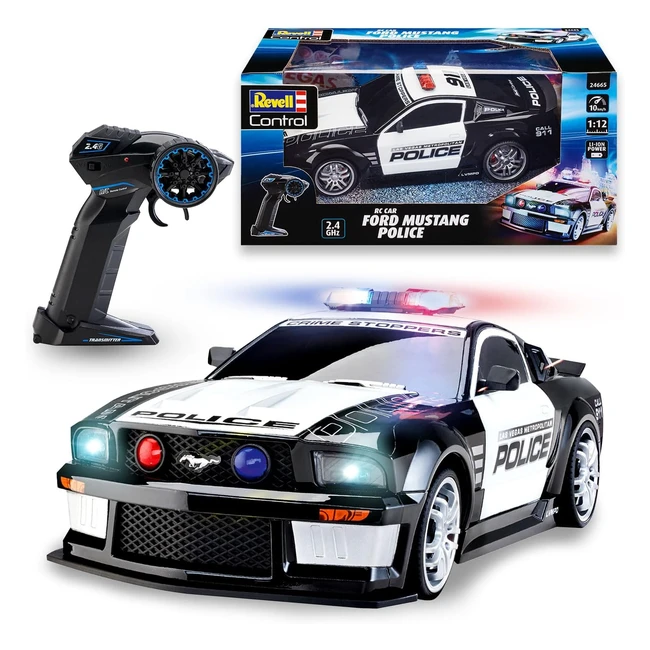 Coche Teledirigido Policía Ford Mustang Escala 1:12 LED Azul