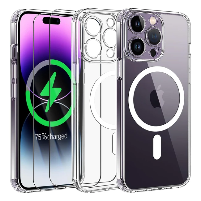 Coque magnétique pour iPhone 14 Pro Max Qasyfanc - Protection caméra, 2 verres trempés - Mince, militaire, antichoc