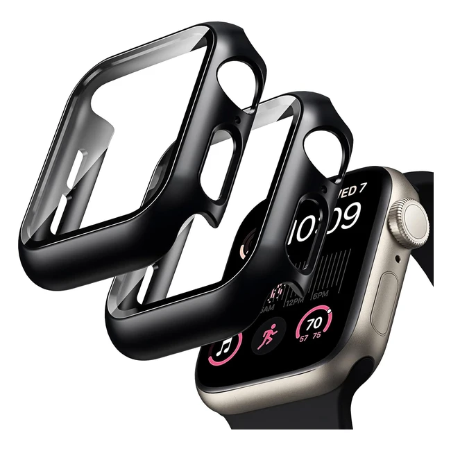 Coque pour Apple Watch Series SE654 44mm - Protection en Verre Trempé - Noir