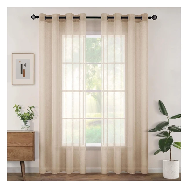 Cortinas Modernas Woaboy 140x260cm - Pack de 2 - Visillos Translúcidos de Poliéster con Anillas - Color Beige