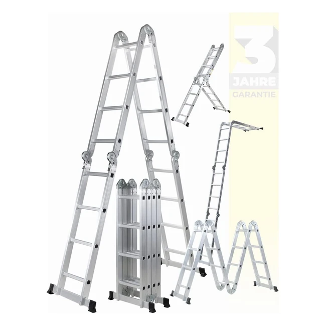 Craftfull Aluminium Mehrzweckleiter CF104A 6in1 470 cm Leiter Gelenkleiter Leitergerüst Silber 4x4 Sprossen