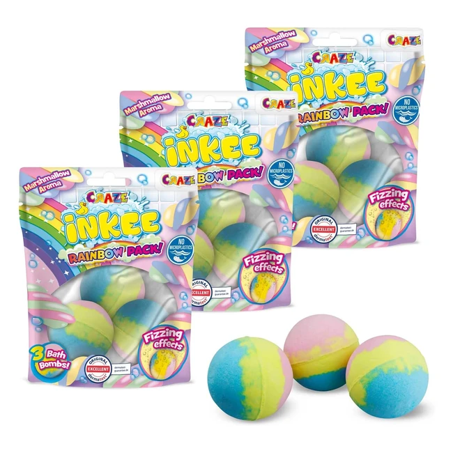 Craze Inkee 3 Set Bombe da Bagno Bambini Arcobaleno Effetto Effervescente 9 Bolle di Sapone Multicolore 30448