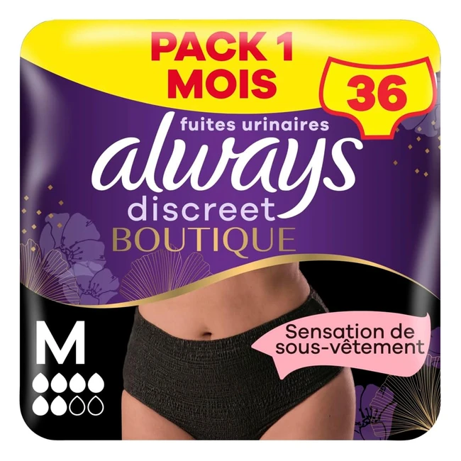 Culottes Always Discreet Boutique 36 - Protection Très Absorbante - Taille M - Noir
