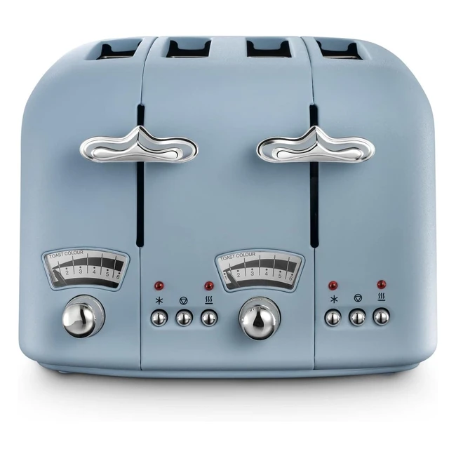 Delonghi Argento Flora CT04AZ 4 Slice Toaster - Agave Blue - Reheat, Defrost, Cancel