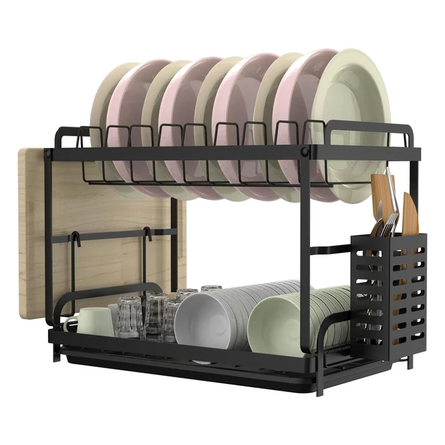 Dish Drainer Rack with Cutlery Holder - Easy Installation - Two Tier - Small Kitchen Counter