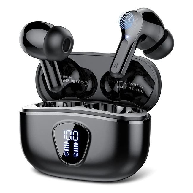 Ecouteurs Bluetooth Sans Fil 53 Oreillette Basses Immersives 4 Enc Mic Casque 40h LED Tanche IP7 Contrle Tactile Noir2024