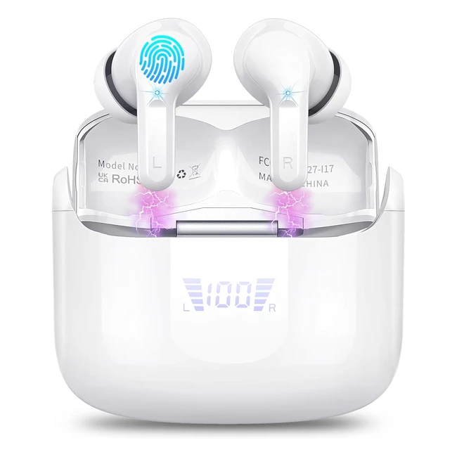 Écouteurs Bluetooth Sans Fil Couteur Bluetooth 53 HiFi Stéréo Écouteurs Sans Fil avec CVC80 Antibruit Mic Casque 40H Durée de Lecture Oreillette Bluetooth IP7 Étanche Écran LED Blanc2024 New