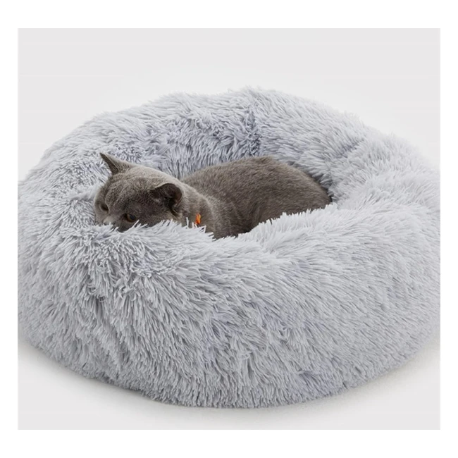 Enjamoy Plush Donut Dog Bed Calming Round Bed - Soft Fluffy Cuddler Pet Cushion - Grey 50cm