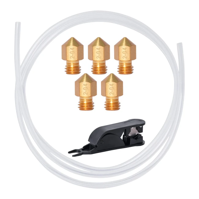 Ensemble de 5 buses d'impression 3D en laiton de 0,4 mm avec tube en téflon - Référence DERUC-04