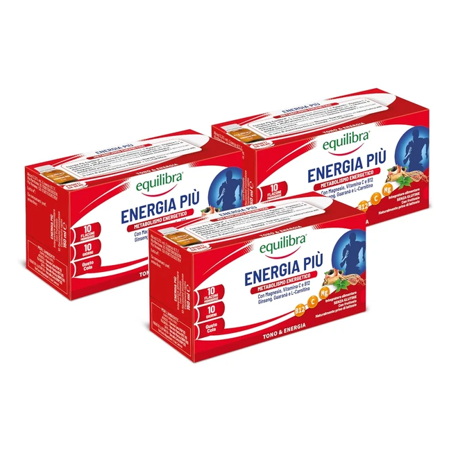 Equilibra Integratore Alimentare Energia con Magnesio Vitamina C B12 Ginseng Guarana e L-Carnitina - 3 Confezioni da 10 Flaconcini