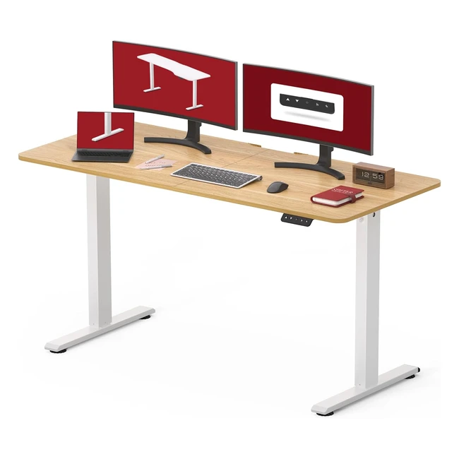 Escritorio elevable eléctrico Sanodesk QS1 140x60 cm - Altura regulable - Control de memoria - Tecnología anticolisión - Blanco arce
