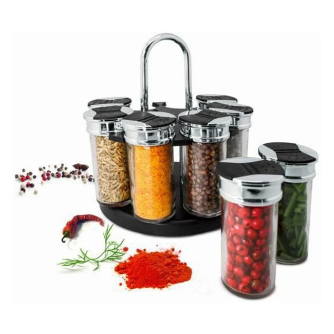 Especiero Carrusel Nerthus 8 Frascos | Organizador de Hierbas y Especias | Ahorra Espacio | Negro/Plata