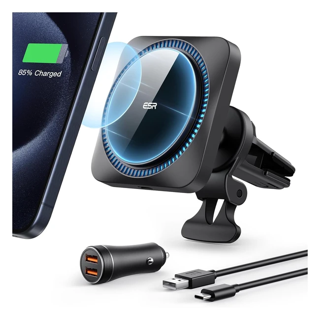 ESR HaloLock Caricatore Wireless per Auto con CryoBoost, Compatibile con iPhone Serie 15141312 e MagSafe, Tecnologia di Raffreddamento del Telefono, Include un Adattatore QC 30 da 36W