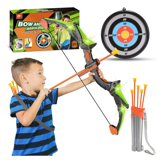 ¡Set de tiro con arco para nios Eucoco! Equipado con arco y flecha con LED, objetivo, flecha ventosa, carcaj de arco. Seguro, durable y hecho de material ABS de alta calidad. Mejora la creatividad y coordinación. Ideal para actividades al aire libre y fiestas. Enriquese la vida infantil y promueva la relación entre padres e hijos. ¡Regalo ideal para nios!