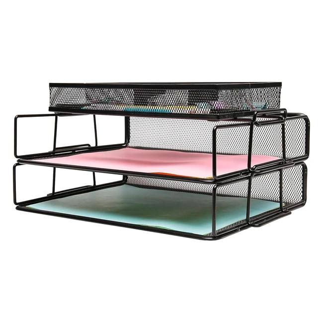 Exerz Organizador de Escritorio de Malla 2 Capas con Divisor Adicional - Negro
