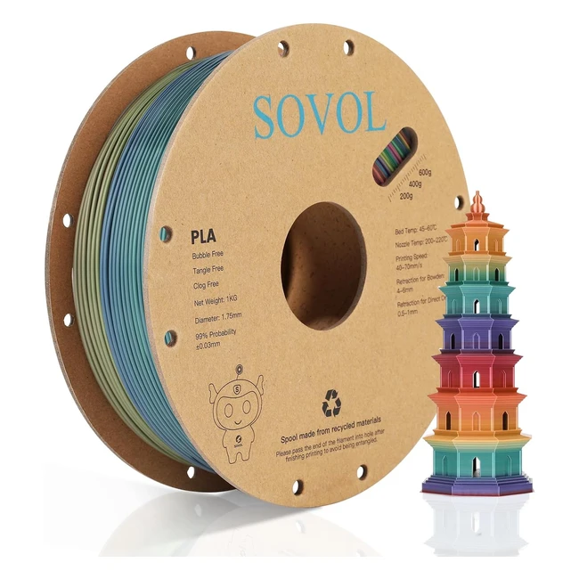 -5%Filamento PLA di seta multicolore arcobaleno con cambio rapido di colore ogni 3-5 metri. Sperimenta bei colori diversi con aspetto lucido perfetto per artigianato e progetti 3D. Materiale PLA importato dagli Stati Uniti, nessun inceppamento, bolla o groviglio. Tolleranza diametro 003mm, compatibile con la maggior parte delle stampanti 3D FDM. Imballaggio eco-friendly. Garanzia di durata. Acquista ora!