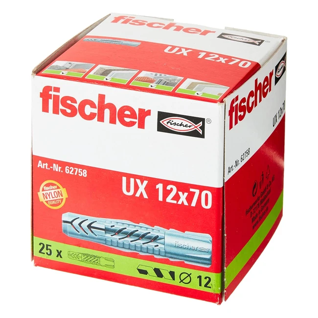 Fischer Universal Dübel UX 62758 - Allzweckdübel ohne Rand für optimalen Halt in Beton, Gipskarton, Lochstein und mehr