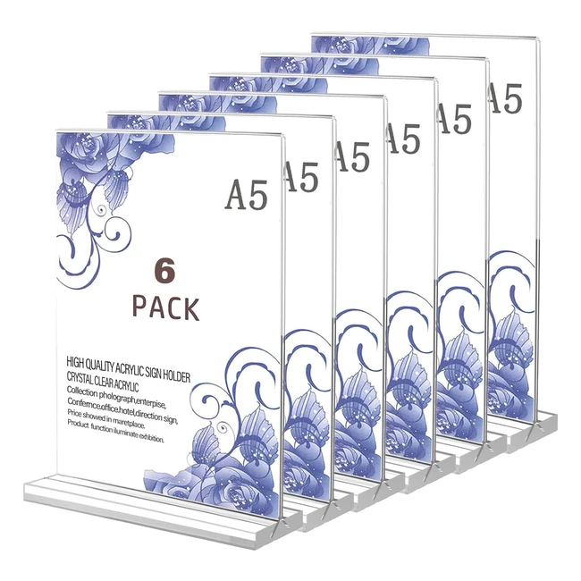 Flow Fire A5 Acrylic Sign Holder 6 Pack TShape Perspex Menu Display Stand